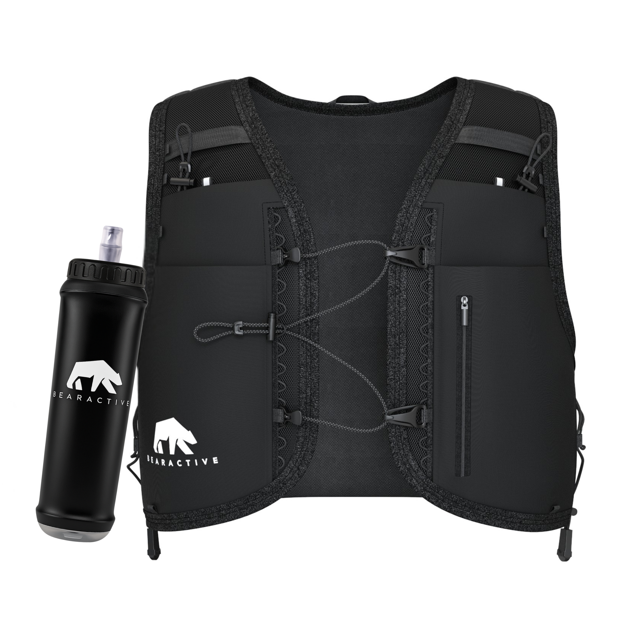 💧 Hydration & Phone Holder: Comes with a 500ml running bottle, space for a 5L hydration pack, and a secure phone pocket for major devices like the iPhone 16 Pro Max and Galaxy S24 Ultra.