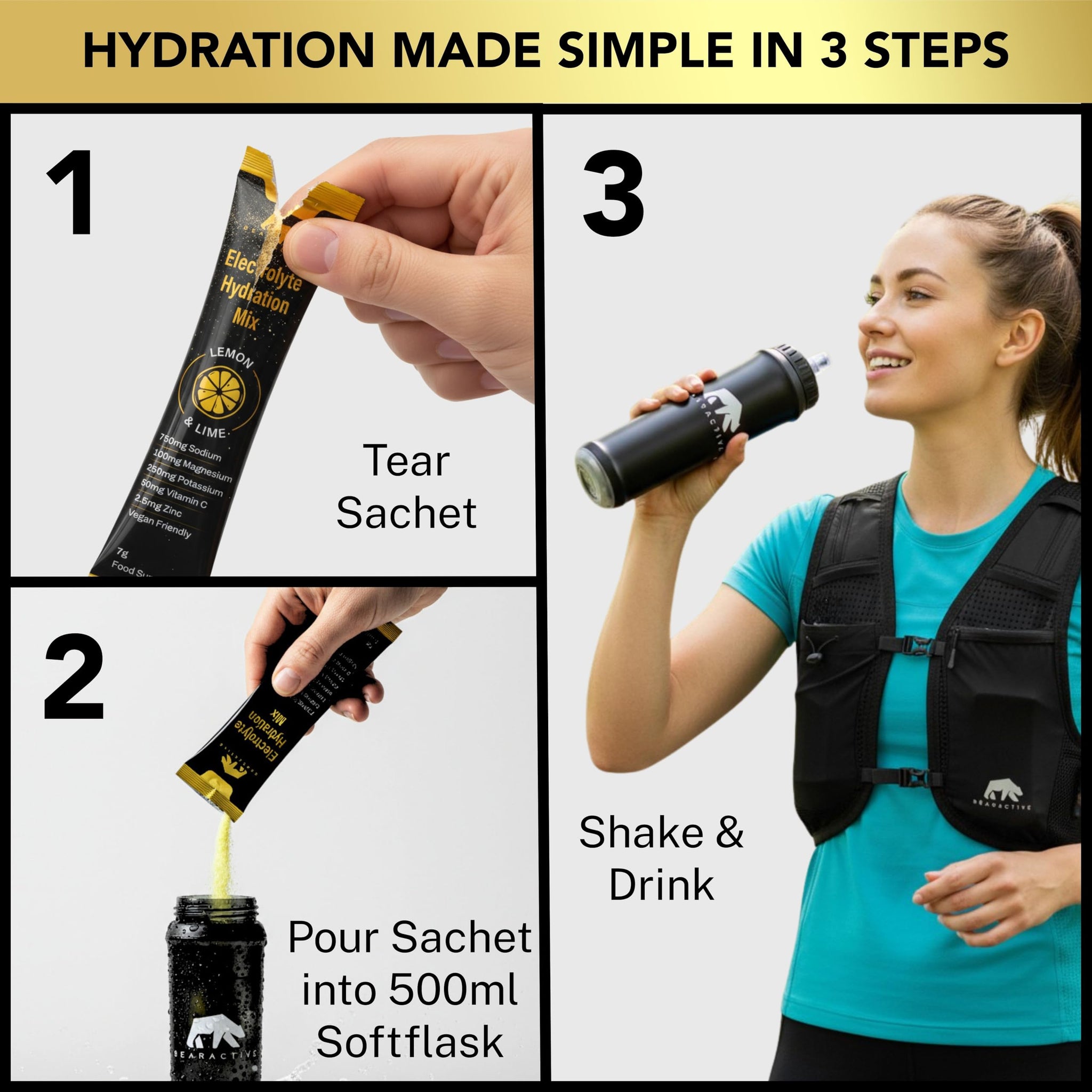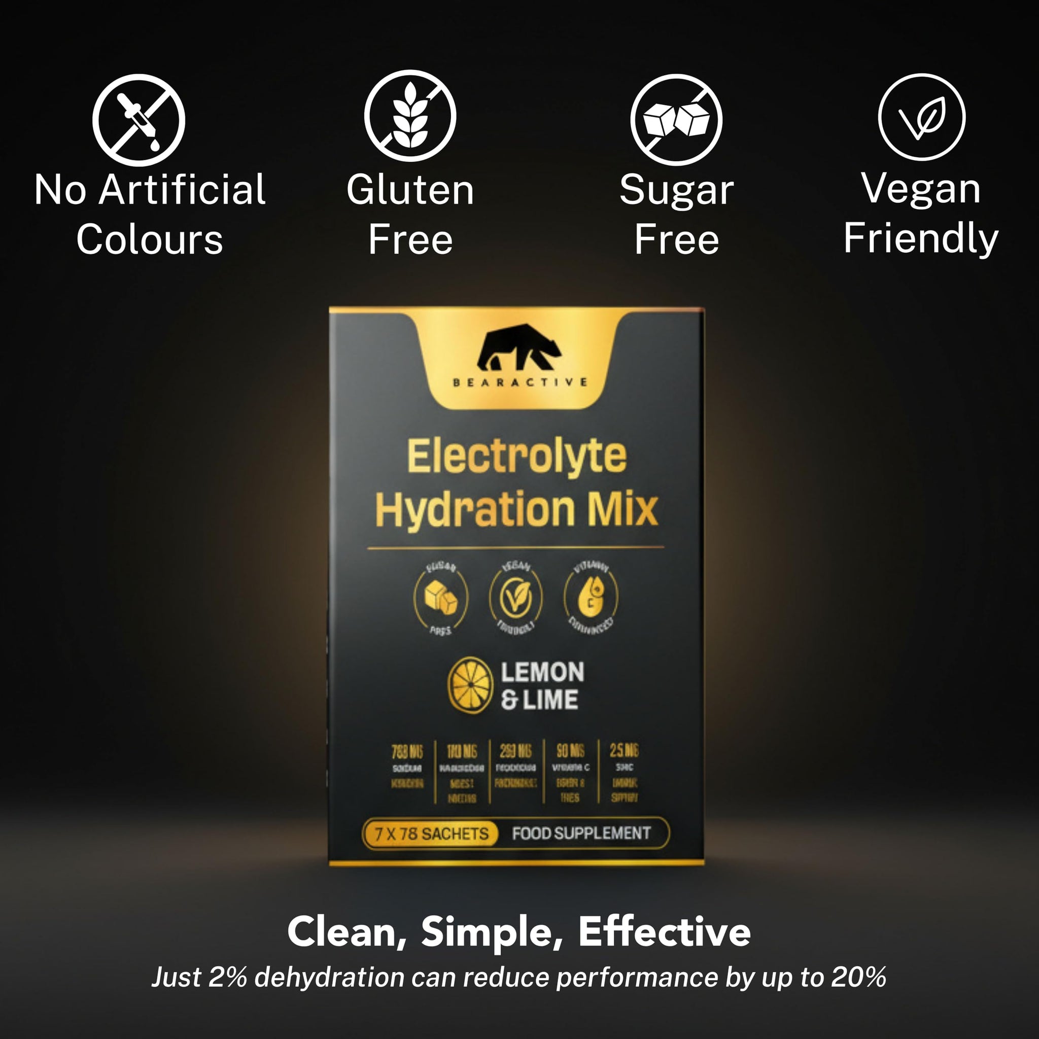 Stay hydrated, energised, and ready to perform with Bearactive Electrolyte Sachets – the ultimate hydration companion for runners, gym workouts, cycling, and outdoor adventures. Formulated to help replenish sodium, potassium, magnesium, and calcium for rapid rehydration and optimal performance.
